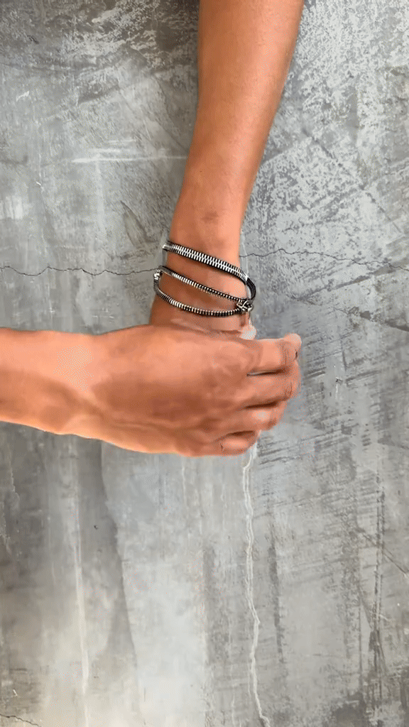 The Zipper Bracelet showcases a detailed design inspired by classic zipper elements, expertly crafted to combine functionality and style.